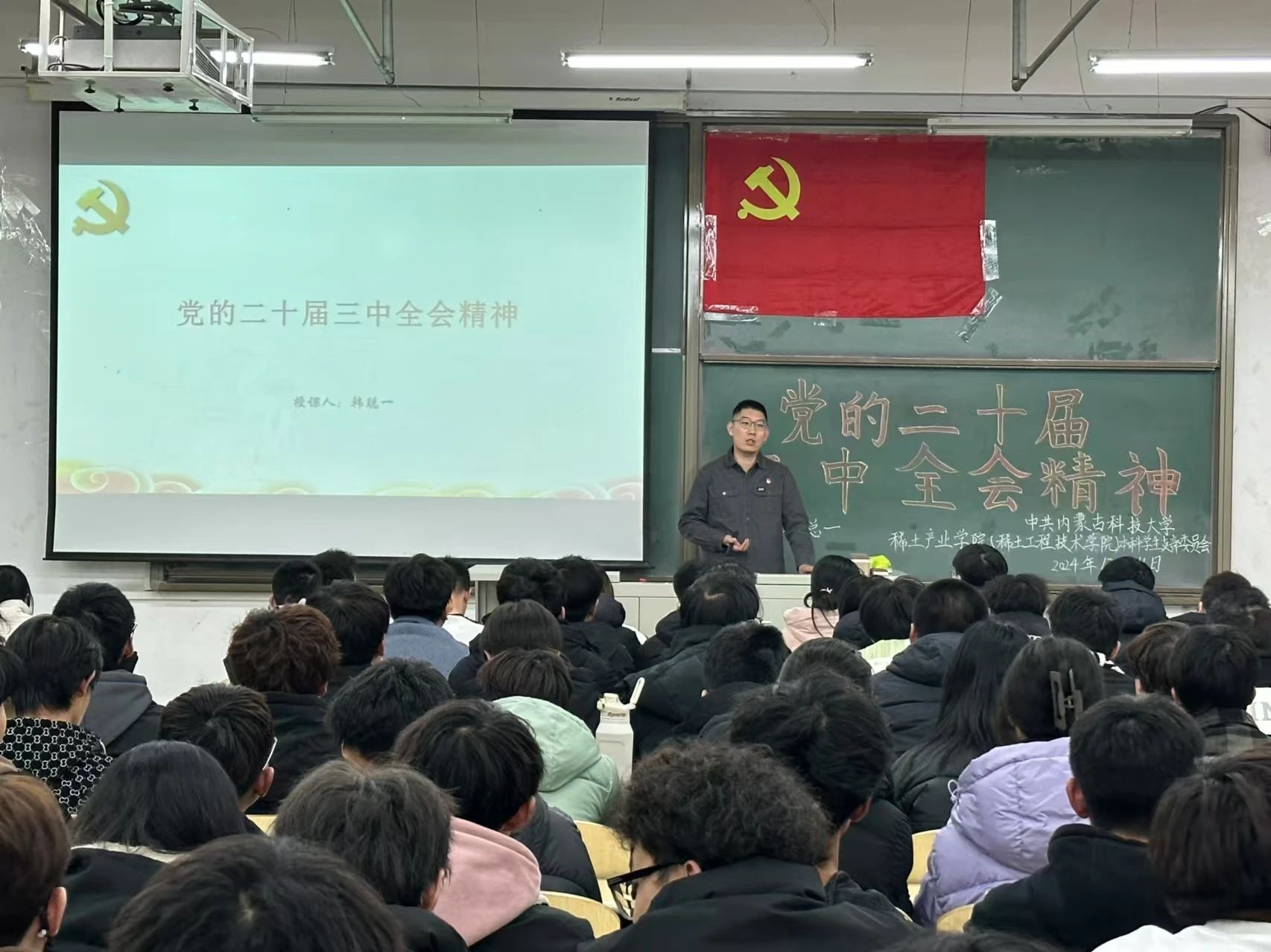 宣讲团成员面向本学院全体学生开展党的二十届三中全会精神宣讲。