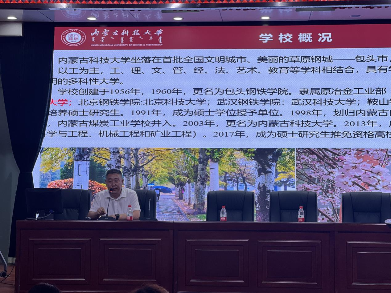 党委副书记兼副院长冯佃臣来到包头市田家炳中学高考志愿填报培训现场,介绍了我校今年招生的具体情况和政策条件,并就考生和家长们关心的转专业、研究生推免、就业率等问题进行了细致全面地解答。