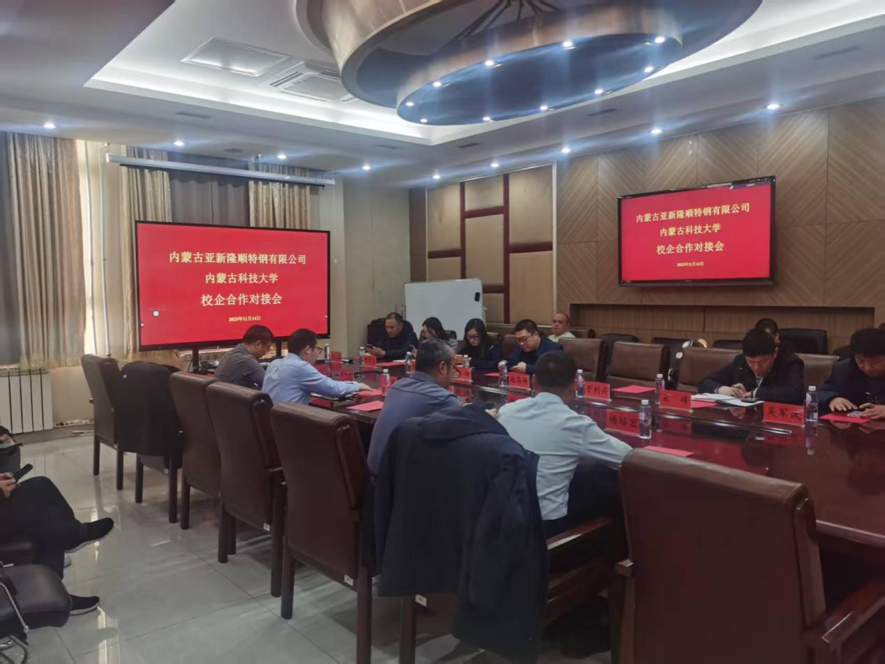 A301会议室举行我校与内蒙古亚新隆顺特钢有限公司校企合作对接会,对深入推进产教融合、校企合作工作,进一步提升我校校企合作办学质量,聚焦校企共同育人、科研合作等,实现校企共赢。