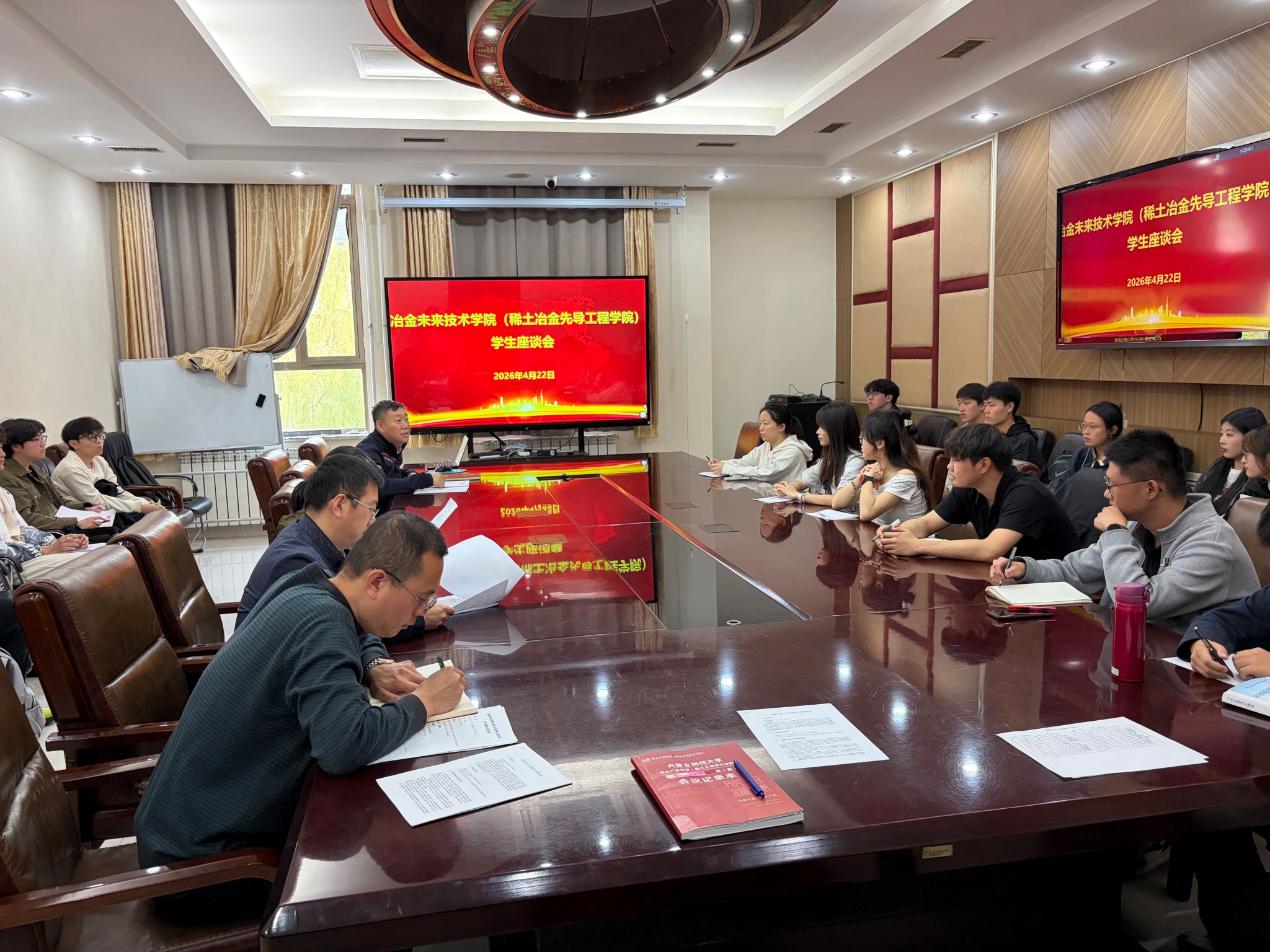 为深入了解冶金未来技术学院学生在学习过程中遇到的实际学业困难,切实回应学生关切,优化培养路径,2026年4月22日下午,冶金未来技术学院在学院A301会议室召开专题座谈会。座谈会由学院教学副院长冯佃臣主持,教务处及研究生院相关领导、冶金未来技术学院23级和24级全体学生参加。