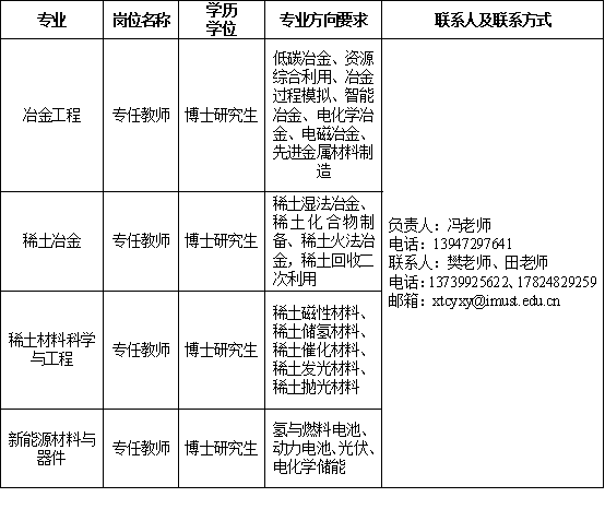 是首批自治区级本科高校现代产业学院建设点,设有冶金工程、稀土冶金、功能材料和新能源材料与器件4个本科专业。拥有冶金工程一级博士学位授予权,稀土冶金和稀土功能材料二级博士学位点;冶金工程一级硕士学位授予权,材料与化工硕士学位授予权。