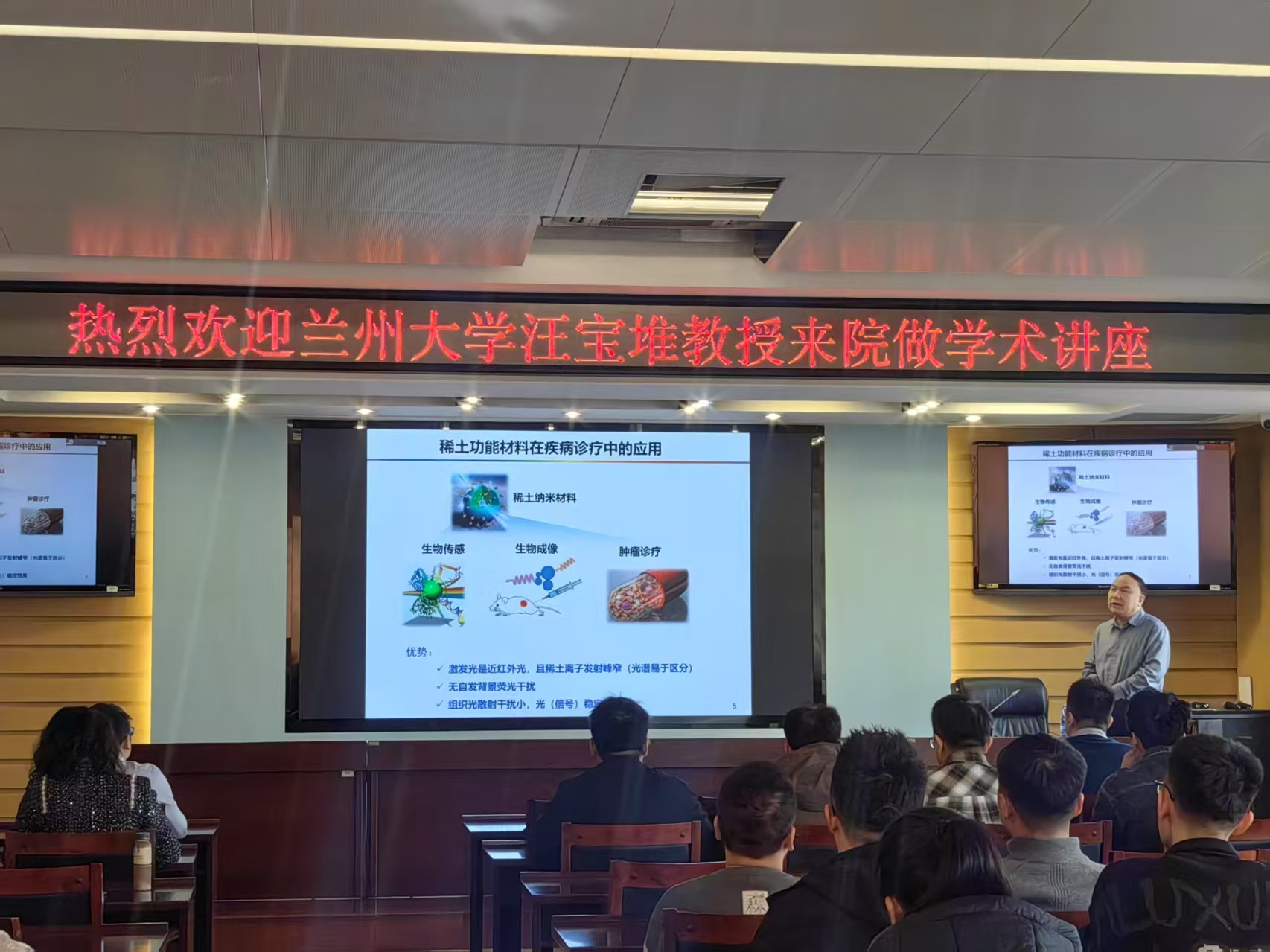2025年3月10日,兰州大学汪宝堆教授应邀为我校师生作了题为“稀土功能材料的合成及在诊疗和催化中的应用”的精彩报告,与师生共同探索癌细胞的化学生物秘密。