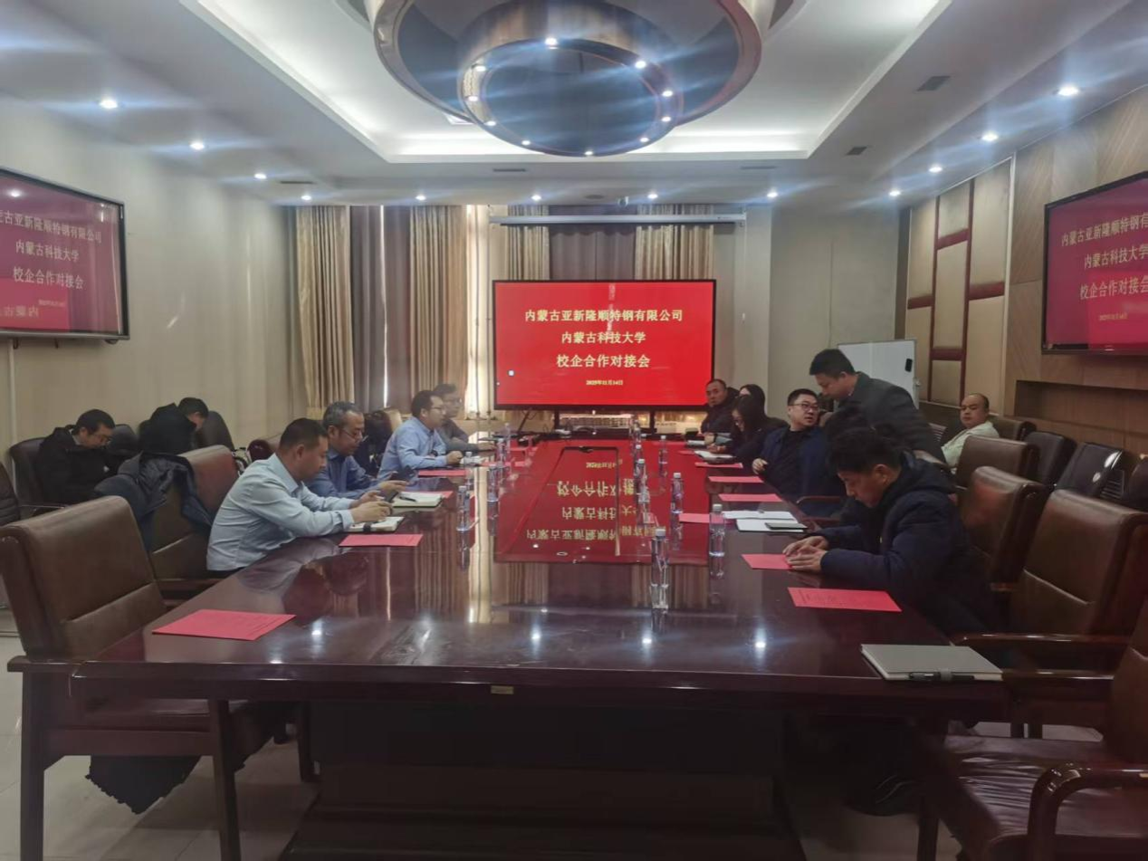A301会议室举行我校与内蒙古亚新隆顺特钢有限公司校企合作对接会,对深入推进产教融合、校企合作工作,进一步提升我校校企合作办学质量,聚焦校企共同育人、科研合作等,实现校企共赢。